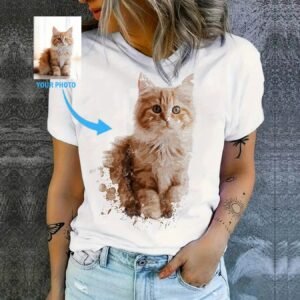 Dog & Cat Print T-Shirt – Personalized Photo Print Women’s T-Shirt