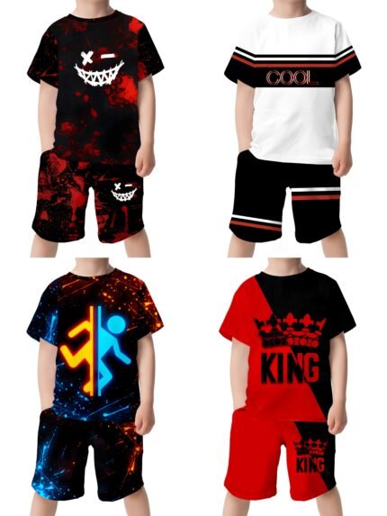 4-Piece Boys’ 3D Printed Summer Set – Short-Sleeve T-Shirts & Shorts Outfit – Cool Graphic Design Casual Wear for Kids