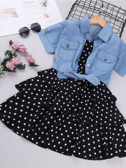 2-Piece Toddler Girls’ Outfit – Cute Polka-Dot Skirt & T-Shirt Set – Perfect Summer Outfit for Toddlers