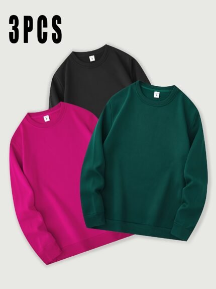 3-Pack Men’s Casual Crew Neck Sweatshirts – Solid Color Polyester Knit Pullover, Regular Fit – For Autumn/Winter – For Men – Perfect for Casual Wear – Great Gift Idea for Him