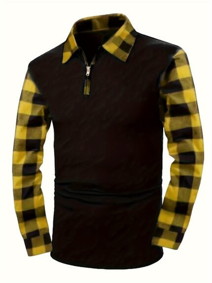Men’s Casual Retro Plaid Lapel 1/4 Zipper Long Sleeve Shirt For Business