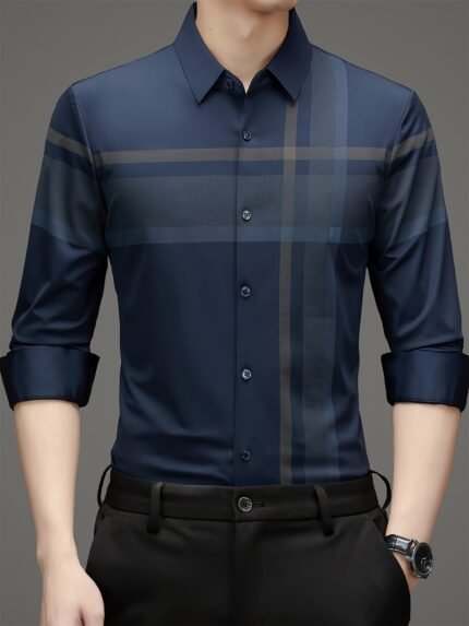 Men’s Business Wrinkle Free Untucked Stretch Long Sleeve Button Down Dress Shirts – Wrinkle-Resistant & Comfortable Fabric – For Office & Formal Occasions – Ideal Gift for Professionals