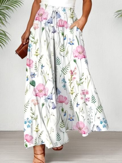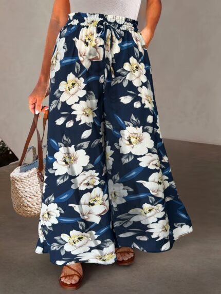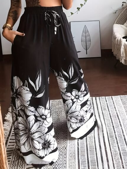 Women’s Plus Size Floral Wide-Leg Pants – All-Season Boho Style