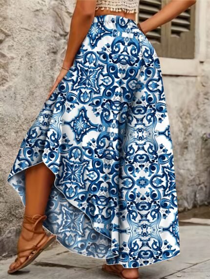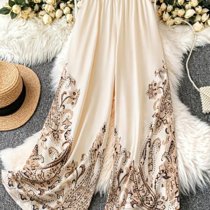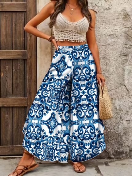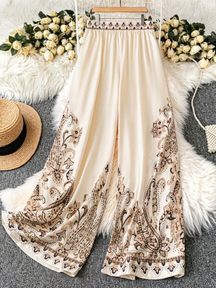 Plus Size Paisley Wide-Leg Pants – Boho Chic Summer Vacation Style