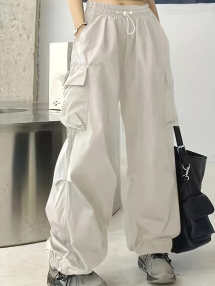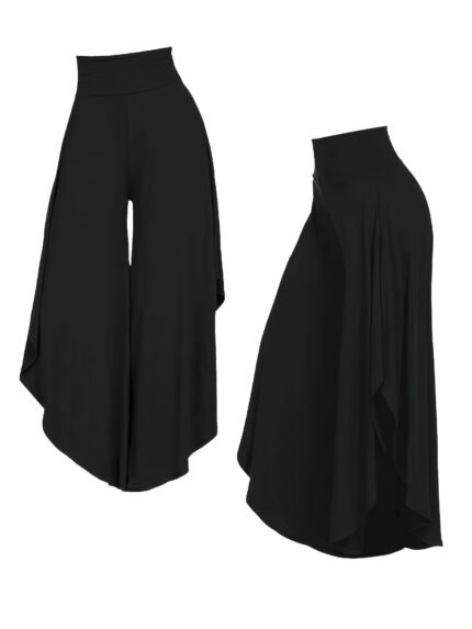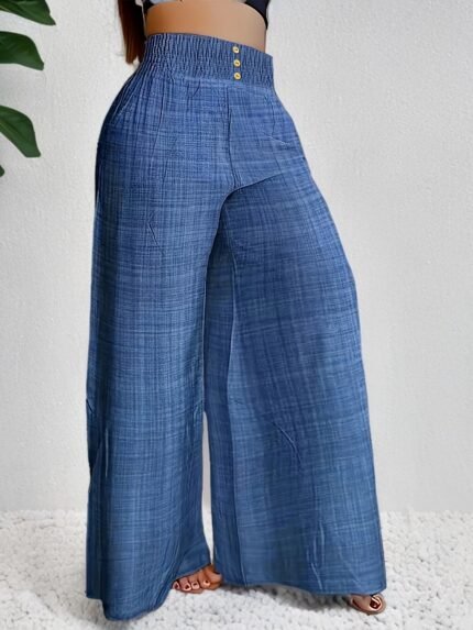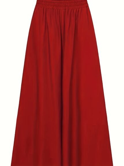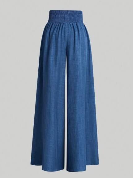 Solid Palazzo Pants – Casual Wide-Leg Elastic Waist, Women’s Clothing