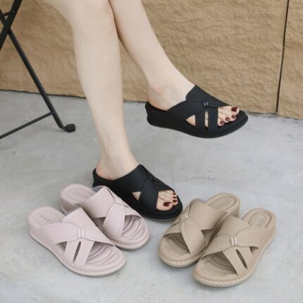 Women’s Summer Slide Sandals – Casual Comfortable Thick Sole, Open Toe, Ankle Strap, Faux Cover, Available in Beige, Pinkish-Purple, and Black, Summer Sandals
