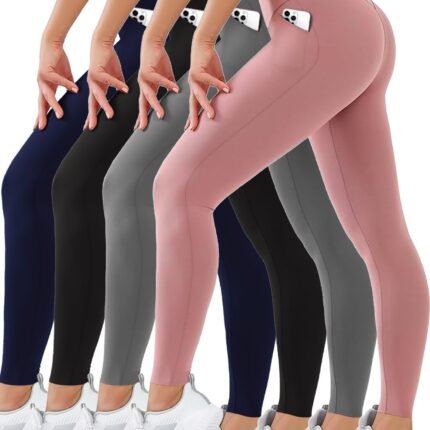 4pcs High Waist Yoga Leggings With Pocket For Women – Solid Color, Tight Fit – Women’s Activewear – For Yoga, Fitness & Running – Perfect Gift for Fitness Enthusiasts