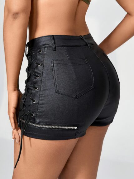 edgy PU-coated shorts for women