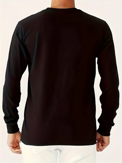 [LHeurystic, Sports Style Tee] LHeurystic Men’s Long Sleeve Crew Neck T-Shirt – Polyester Blend, Medium Stretch Knit, Alphabet Pattern – Regular Fit Casual Activewear