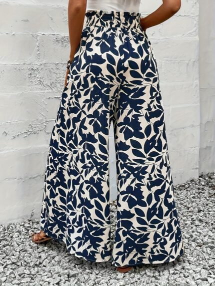 Women’S Elegant Wide-Leg Floral Print Pants with Tie Waist – Romantic Summer Holiday Trousers, Lace-Up Detail, Perfect for Adult Casual Attire, Casual Attire|Floral Print Trousers|Laceup Detail