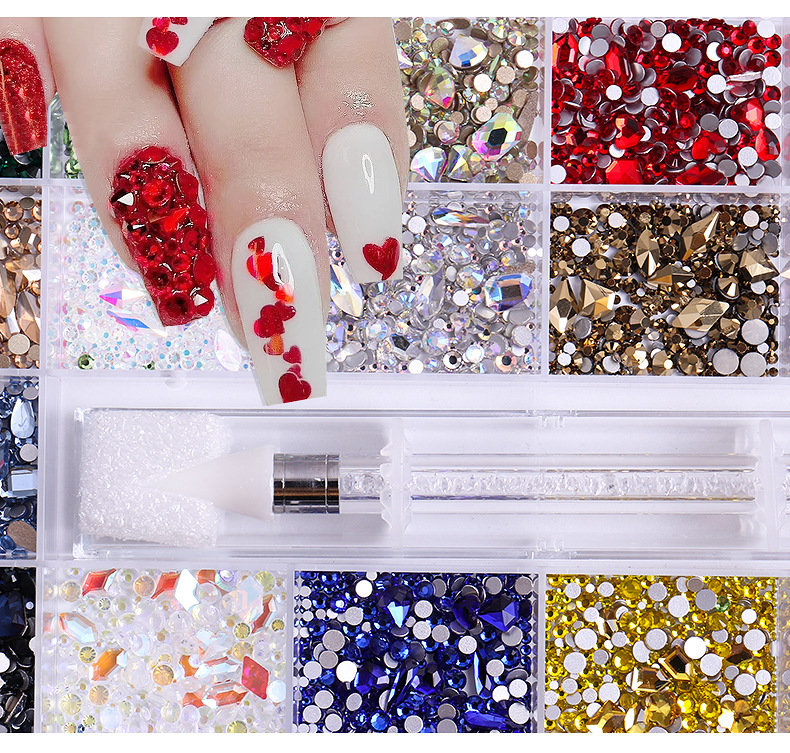 21-Grids Mixed Color Crystal Nail Rhinestones – Diverse Shapes, Shimmering Flat Back Glass Gems for Nail Art DIY, Fashionable Manicure Accents, Creative Crafting Embellishments