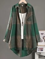 · Stylish Design: Colorblock plaid print and polo collar make this shirt a trendy addition to your wardrobe