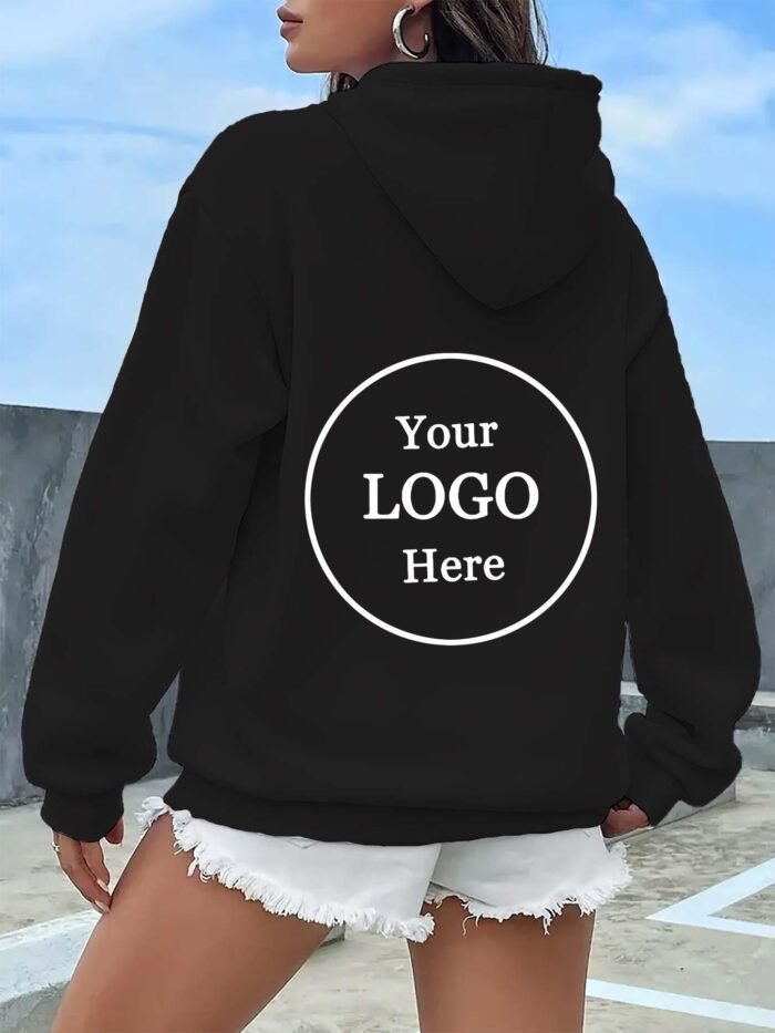 Custom Women’S Fleece-Lined Hoodie – Personalized “Your Logo Here” Print, Cozy Long Sleeve Pullover with Drawstring, Brown, Casual Style, Front Pocket, Allseason Wear, Casual Wear Hoodie | Custom Logo Design | Soft Texture Hoodie