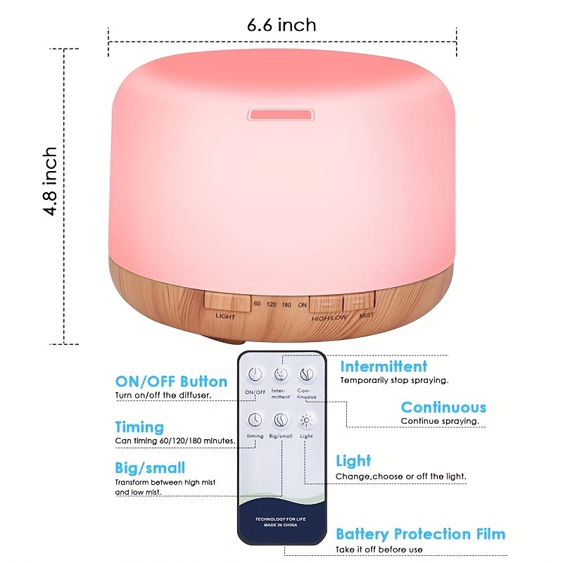 [Remote Control ] with remote control, you can easy set 4 timers,intermittent mist mode,light mode.If you have any issue with your diffuser, do not hesitate to contact us – your satisfaction is paramount!